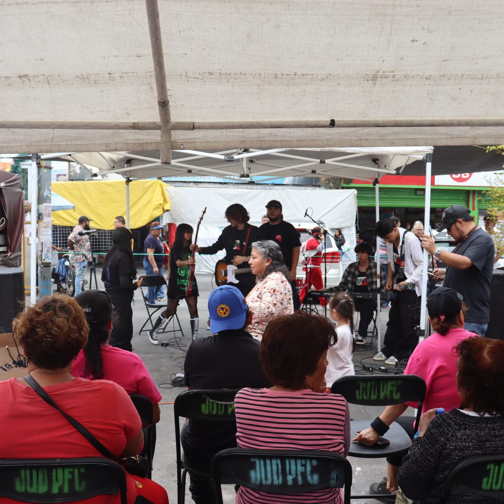 Asimismo, el evento contó con la participación de medios y proyectos comunitarios que dan voz al barrio, como La SanFe Radio y CC Radio, reafirmando la importancia de la comunicación local como herramienta de identidad y difusión cultural. La jornada cerró con la presentación de la banda de rock Flowere, que aportó un toque musical contemporáneo al festejo, conectando con nuevas generaciones y demostrando que el mercado de San Felipe de Jesús no solo preserva tradiciones, sino que también impulsa nuevas expresiones artísticas dentro de la comunidad.