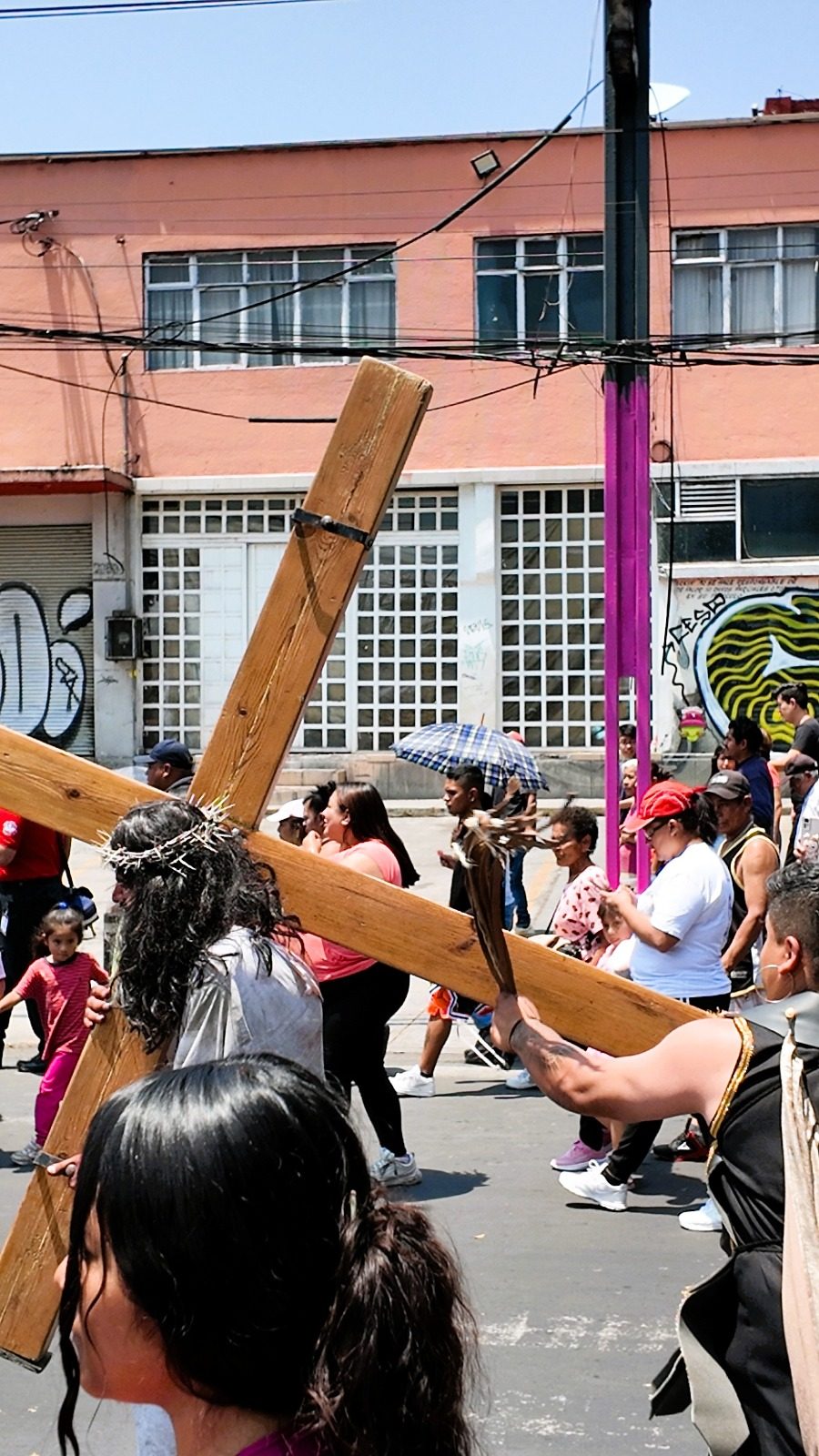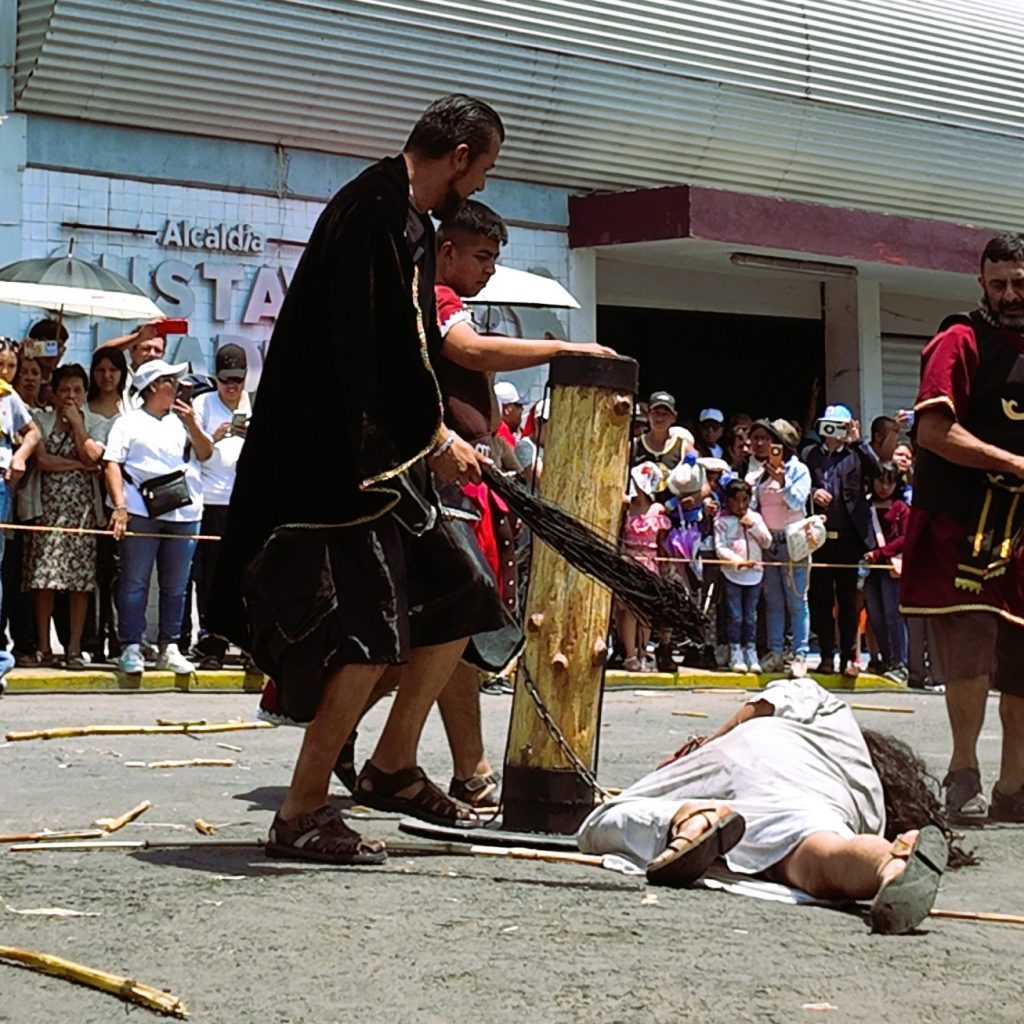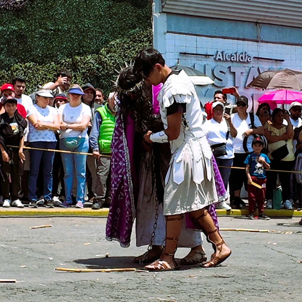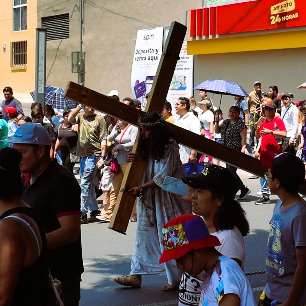 El momento más representativo del Viernes Santo en Santiago Atzacoalco 2026 es el Viacrucis, donde se recrea el camino de Jesús hacia la crucifixión.